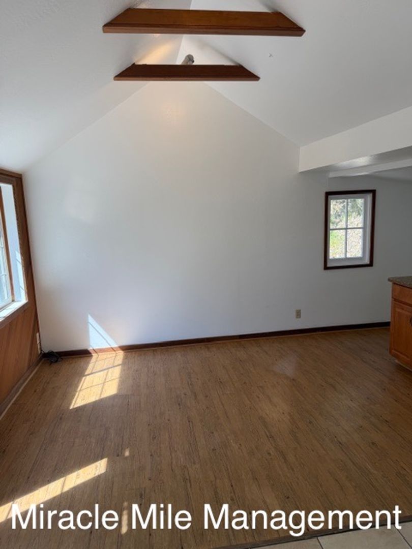 A rear deck extends the living space outdoors, creating an ideal setting for quiet mornings or evening relaxation among the trees. Additional amenities include shared laundry and access to shared outdoor space, perfect for gardening enthusiasts.